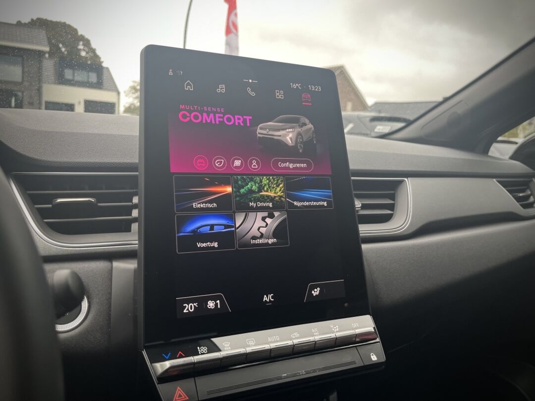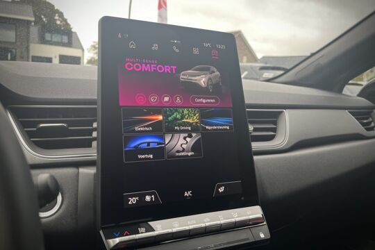 Je ziet geen paaltje meer over het hoofd dankzij de achteruitrijcamera. De electronic climate control zorgt onder alle omstandigheden voor een prettige temperatuur. Kabelkluwens en stekkerslingers van smartphones zijn hier niet aan de orde. De draadloze oplaadmogelijkheid voor telefoons maakt opladen strak, simpel en snel. De DAB-ontvanger zorgt voor een ruime keuze uit digitale radiozenders en een kristalheldere geluidsweergave. De auto neemt je werk uit handen doordat hij zelf veel in de gaten houdt. Een regensensor en een automatisch inschakelbare verlichting nemen waar wanneer de ruitenwissers en het licht aan moeten. Met cruise control, keyless entry, automatisch dimmende spiegels, boordcomputer en verstelbaar stuur is deze Renault helemaal compleet.
