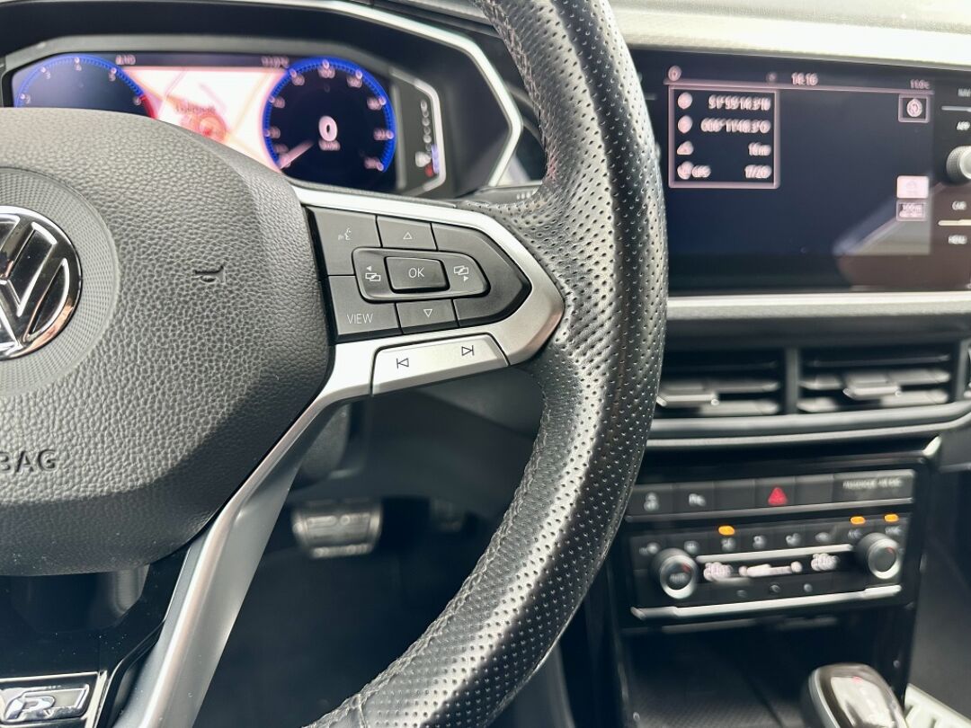 Adaptive cruise control is veilig en comfortabel. De snelheidsregelaar houdt automatisch afstand tot het voertuig dat voor je rijdt. Deze Volkswagen T-Cross is voorzien van remote services. Via je smartphone bedien je diverse functies ook op afstand en krijgt je informatie over de status van je auto. Wegwijs in elke wijk, stad of reisbestemming? Daarvoor zorgt het navigatiesysteem! Of het buiten nu warm is of koud, dankzij automatische airconditioning is het binnen altijd behaaglijk. Alle audioknoppen letterlijk onder handbereik: dat kan met de audiobediening op het stuur. Met draadloos opladen, parkeersensoren achter, regensensor, keyless entry, automatisch dimmende spiegels en lederen stuur is deze Volkswagen helemaal compleet.