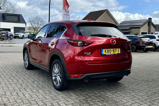 Zeer nette en volledig onderhouden Mazda CX-5 4x4 in meest luxe en complete GT-M uitvoering. Deze Mazda CX-5 biedt alles wat jij van een auto verlangt. Deze auto komt uit 2019. Met een 192PK sterke viercilinder motor en een automatische transmissie beschikt deze Mazda over uitstekende prestaties. Het lederen interieur zorgt voor een klasse uitstraling. Neem plaats op de comfortabele stoelen. Dankzij de elektrische bediening en het geheugen is het eenvoudig om hierin de beste zitpositie te vinden. Dat noemen ze nou een ruimtelijk effect: het elektrisch bediende glazen panoramadak. De elektrisch bedienbare achterklep opent met een druk op de knop. Gewoon, omdat het kan. Deze Mazda CX-5 heeft zelfs een verwarmde achterbank. Ook is de auto voorzien van: 19 inch lichtmetalen velgen, LED koplampen, dakspoiler, donker getint glas achter, in delen neerklapbare achterbank en LED-achterlichten.