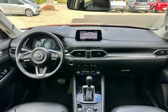 Het gebruik van de 360 graden camera op deze auto helpt je bij het navigeren door lastige rijbanen en het drukke stadsverkeer. Spraaksturing maakt het eenvoudiger en veiliger om deze auto onderweg te bedienen. Topprestaties in muziek en geluid? Dat is bijgeleverd in de vorm van het high performance audiosysteem! Elke weg is een bekende weg voor het aanwezige navigatiesysteem. Deze Mazda CX-5 is voorzien van sensoren aan de achterzijde om een achteropkomend verkeer waarschuwing te geven als de afstand tussen jou en een achterligger te klein is. Deze auto is voorzien van electronic climate control, DAB ontvangst, regensensor, adaptive cruise control, keyless entry en automatisch dimmende spiegels.